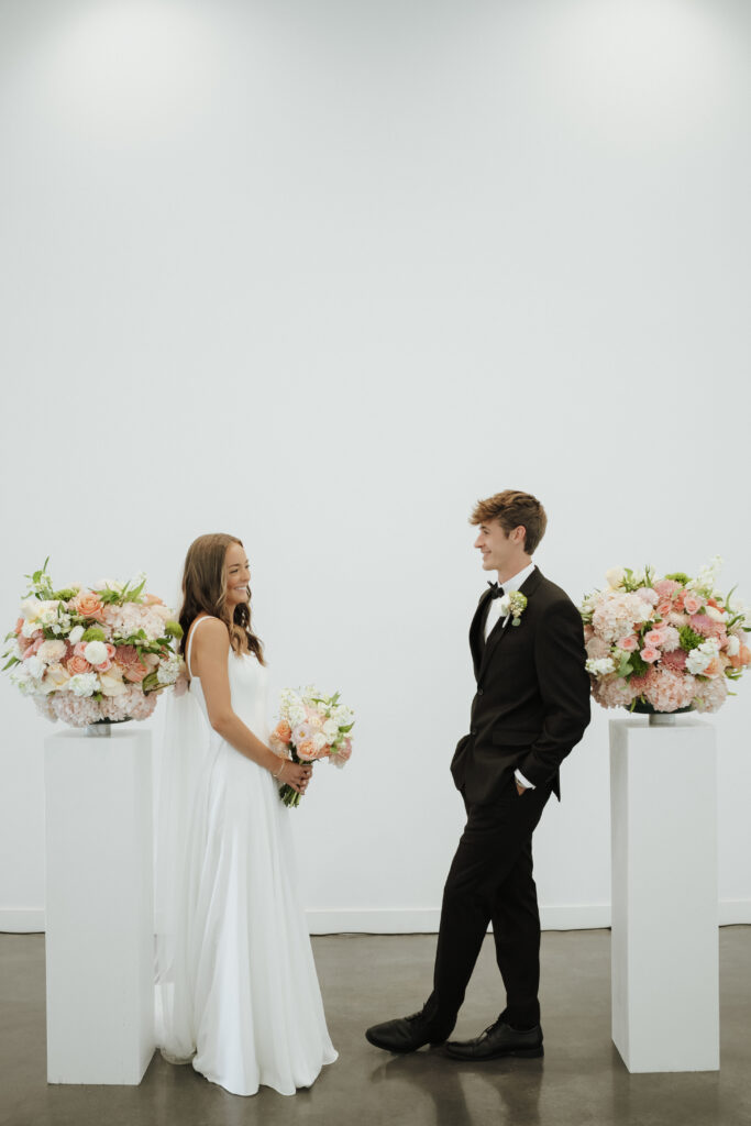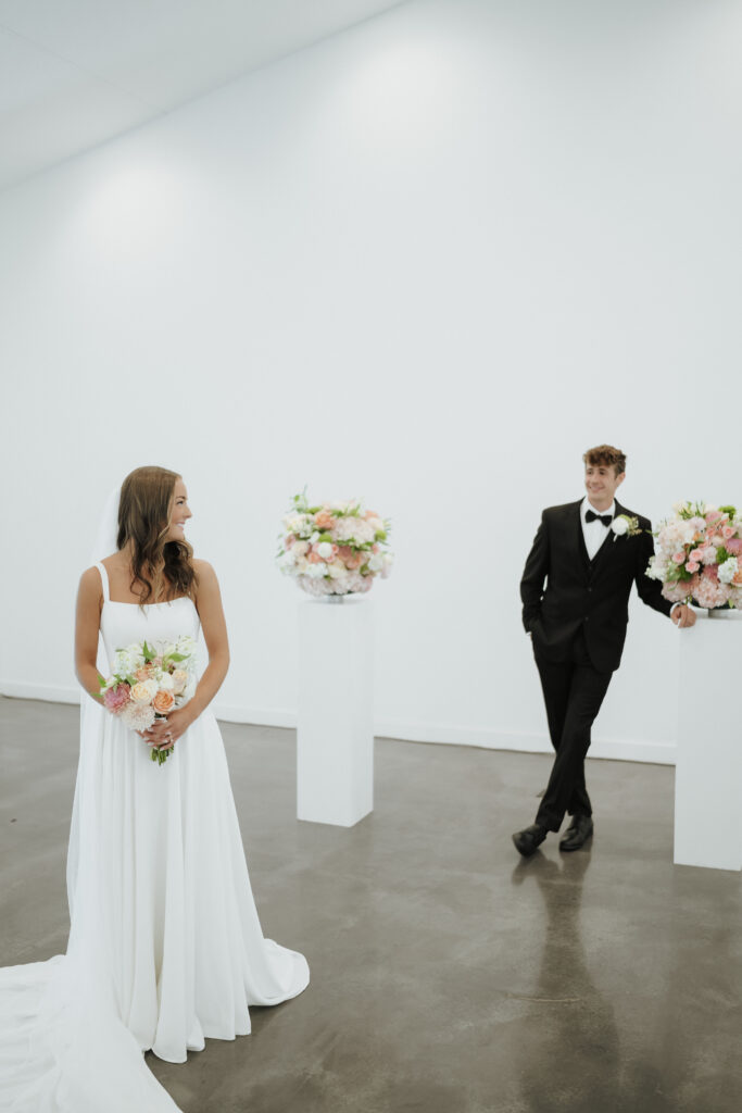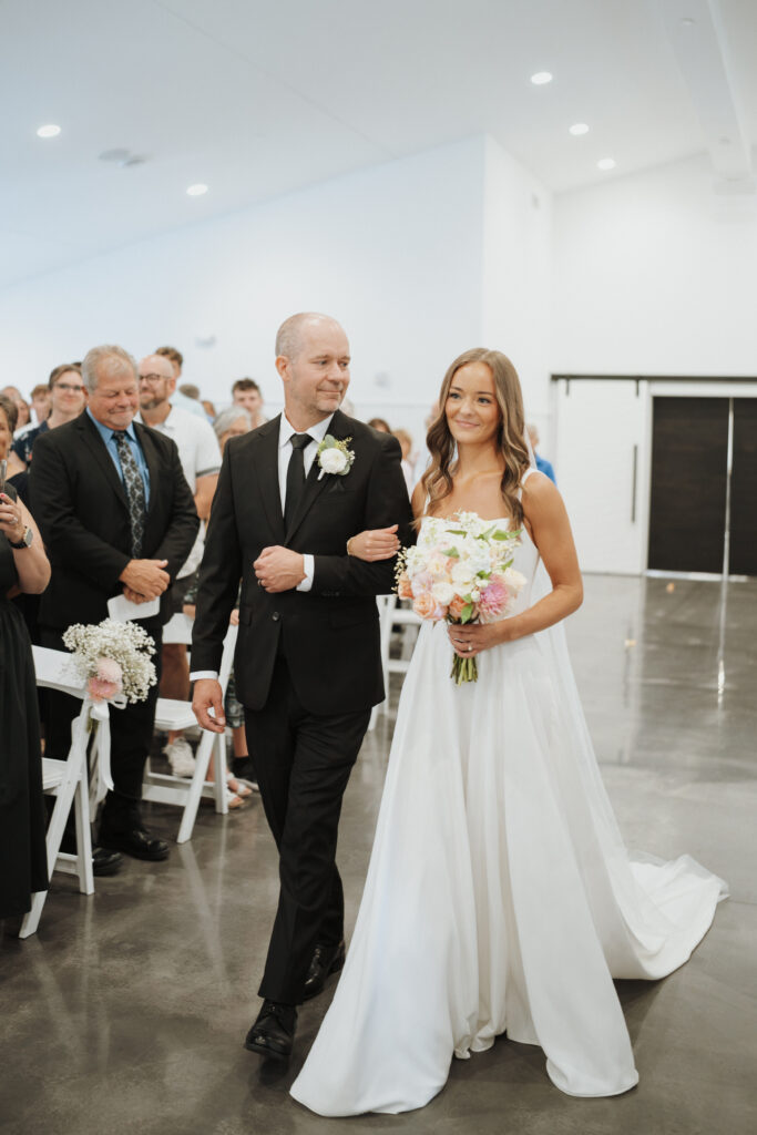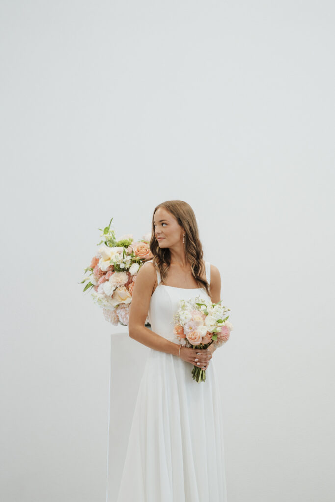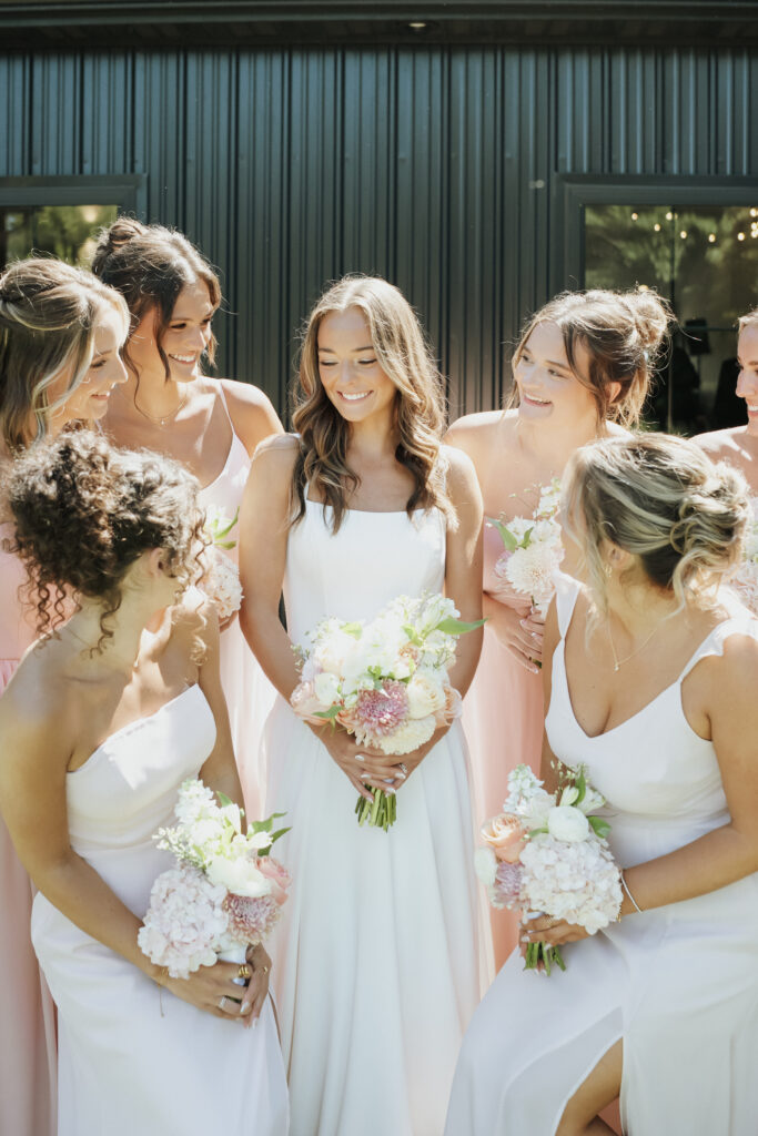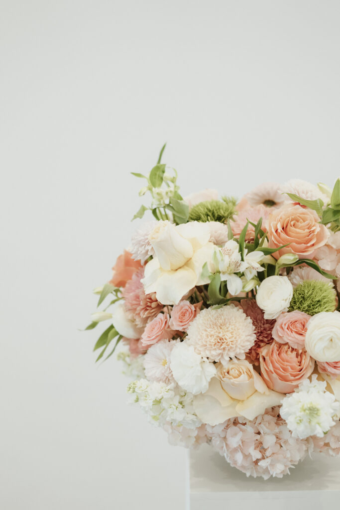Mackenzie embodied a simple, refined elegance that reflected her vision so beautifully. Soft pinks and gentle greens created a delicate, romantic palette that felt both timeless and fresh. Adding an even more meaningful touch, her aunt thoughtfully designed the florals—each arrangement crafted with care and intention. From the ceremony space to her bouquet, every piece carried a sense of love that only family can bring.