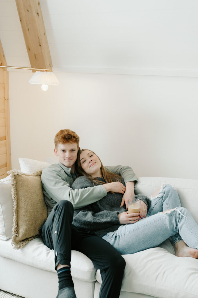 Hank and Rose leaned fully into the cozy cabin vibe during our time together. They brewed coffee, wrapped up in blankets, and settled into the kind of relaxed morning that feels both peaceful and joyful at the same time.