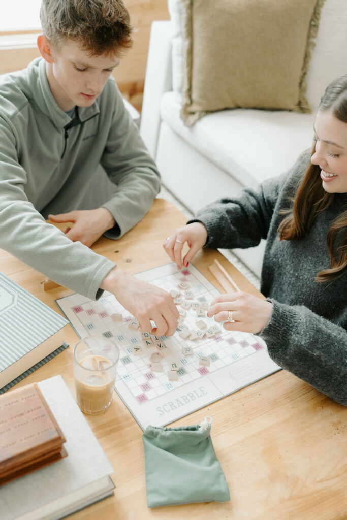 At one point they pulled out a game of Scrabble, which ended up being one of the sweetest parts of the session. It turned into a mix of playful competition and laughter — the kind of small moment that says so much about a relationship. Those unscripted interactions are always the ones that make photos feel the most authentic.