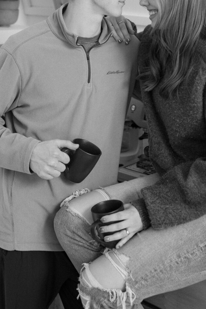 One of my favorite parts of the session was watching their playful dynamic unfold naturally. Whether they were sharing quiet moments with a warm mug of coffee, laughing together, or stealing a few snuggles on the couch, their connection was effortless and genuine.