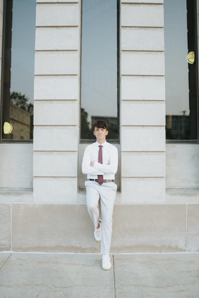 We started William’s session in Fargo, where the downtown area created the perfect setting for a variety of portraits. He brought two different looks for this portion of the session — one more dressed up and polished, and another that felt casual and relaxed.